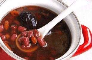 茶材:红豆50克,带皮花生25克,红枣、红糖各15克,水700ml。
